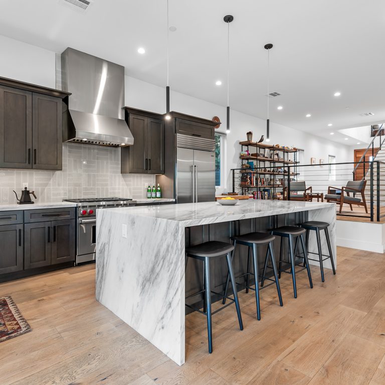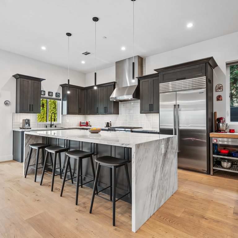 The gourmet kitchen is a culinary enthusiast’s dream. Equipped with high-end Wolf and Subzero appliances and a generously sized marble island that provides seating for casual dining. A thoughtfully designed downstairs bedroom suite with a private bathroom provides a versatile space that can adapt to your specific needs – whether it be a guest room, office, or home gym.
